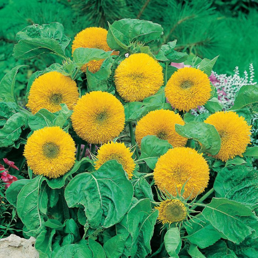 Hoa Hướng Dương Lùn Kép (Helianthus annuus) là giống hướng dương có chiều cao thấp, bông hoa lớn với nhiều lớp cánh xếp dày rất đẹp mắt.